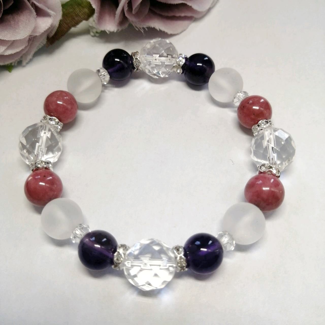 【ロードナイト】【アメジスト】天然石 パワーストーンブレスレッド★恋愛成就をサポート,癒し