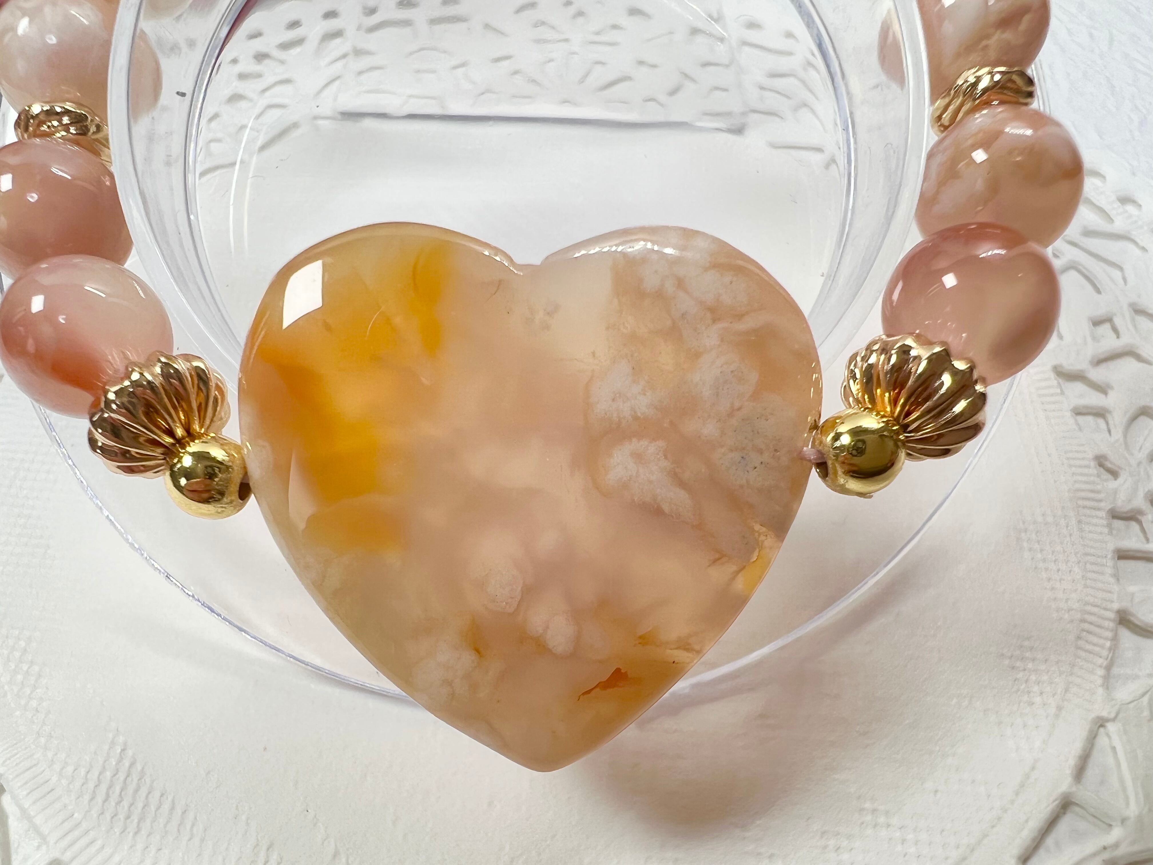 【桜瑪瑙ハートブレスレット♡】③送料無料♡天然石 パワーストーン