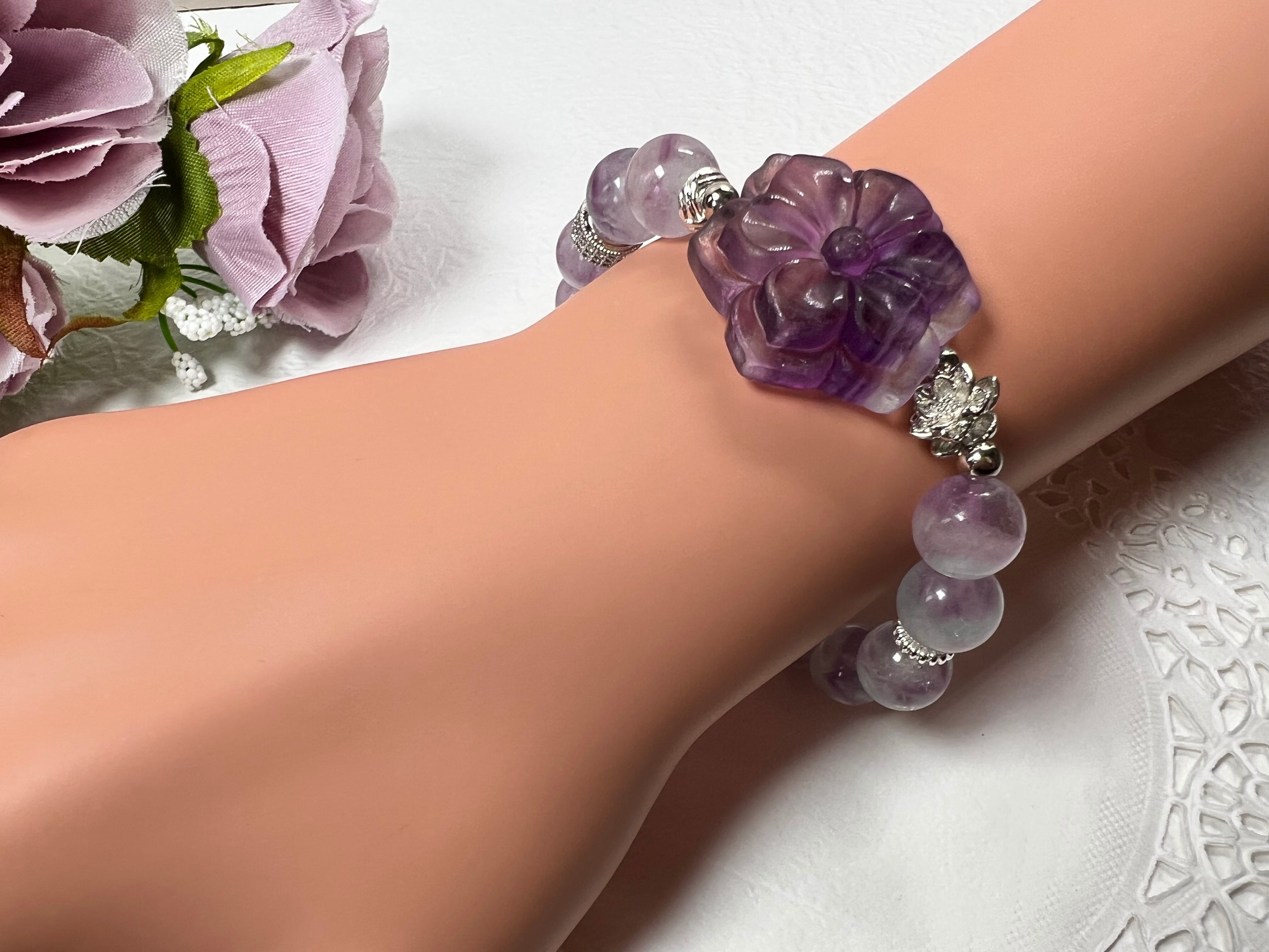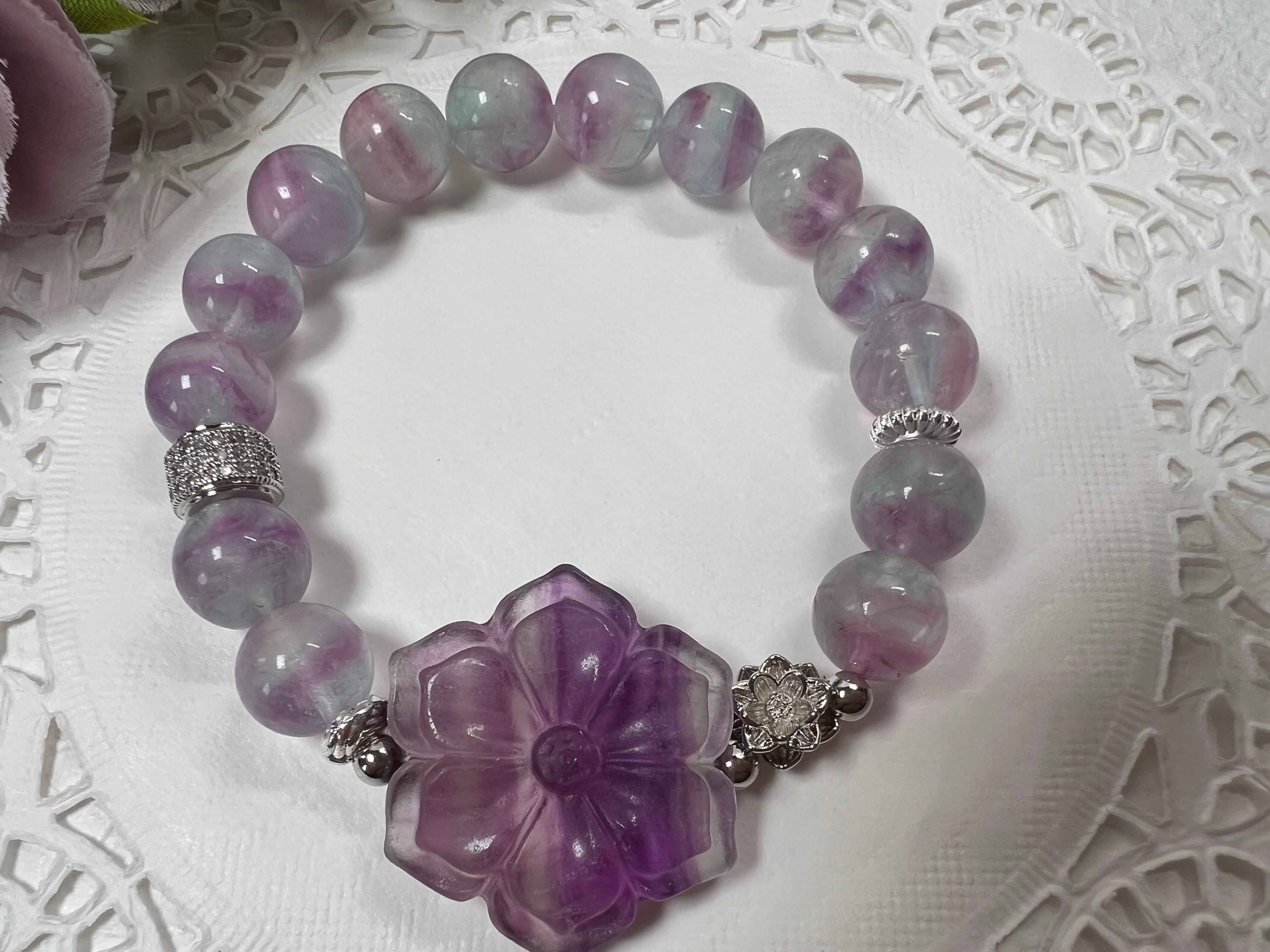 【バイカラーフローライトお花ブレスレット✿*:③】天然石 パワーストーン
