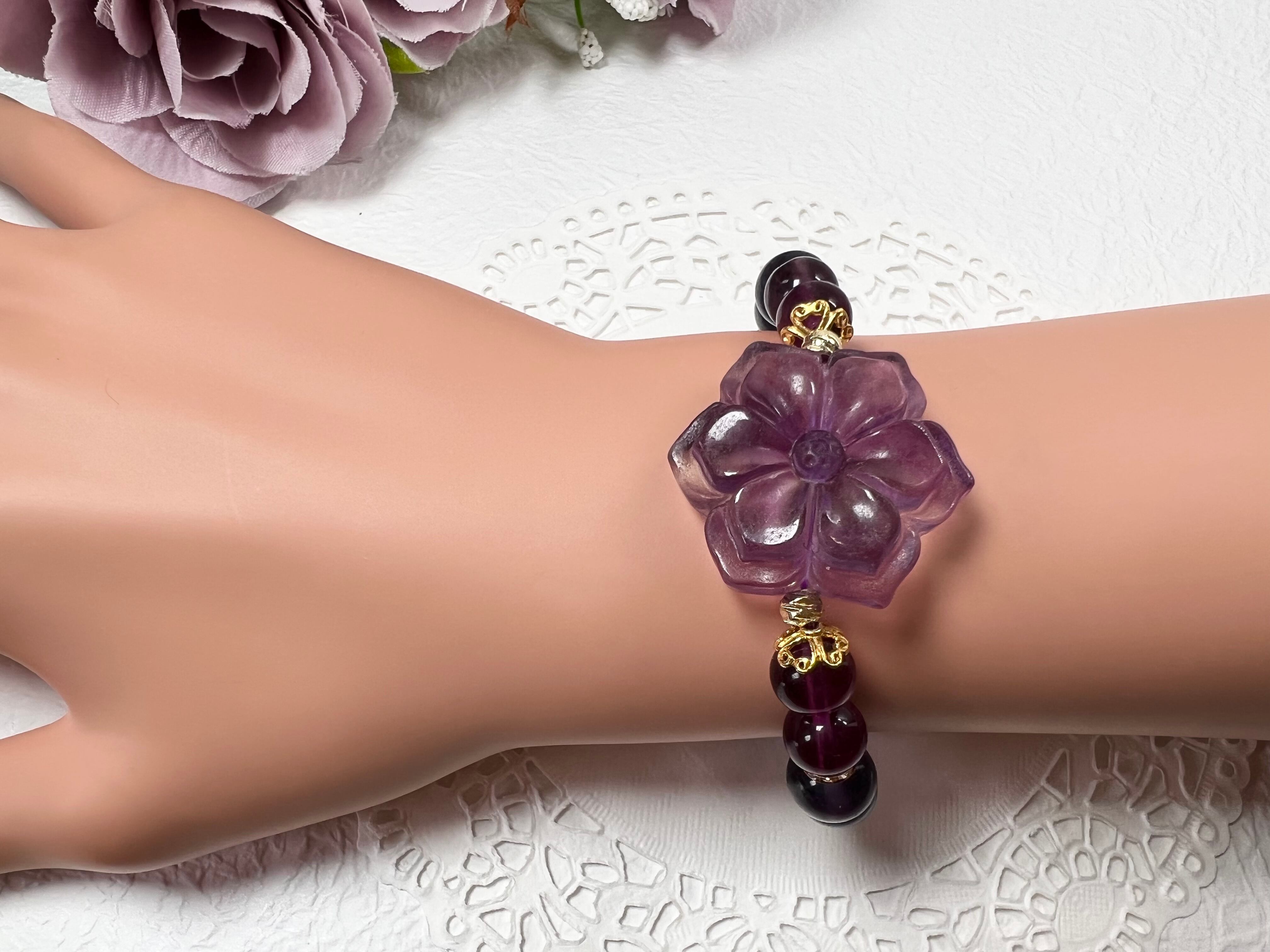 【フローライトお花ブレスレット✿*:④】天然石 パワーストーン