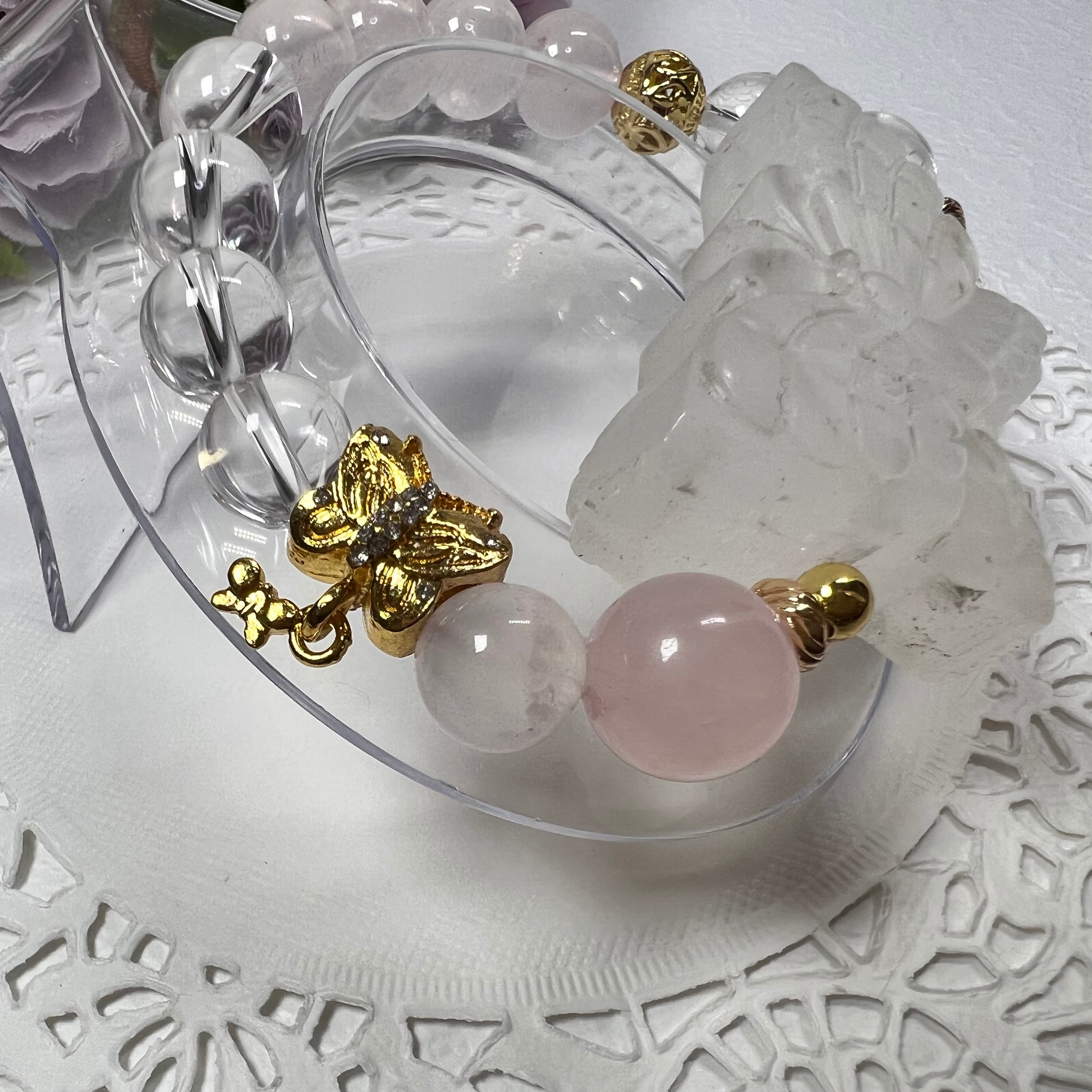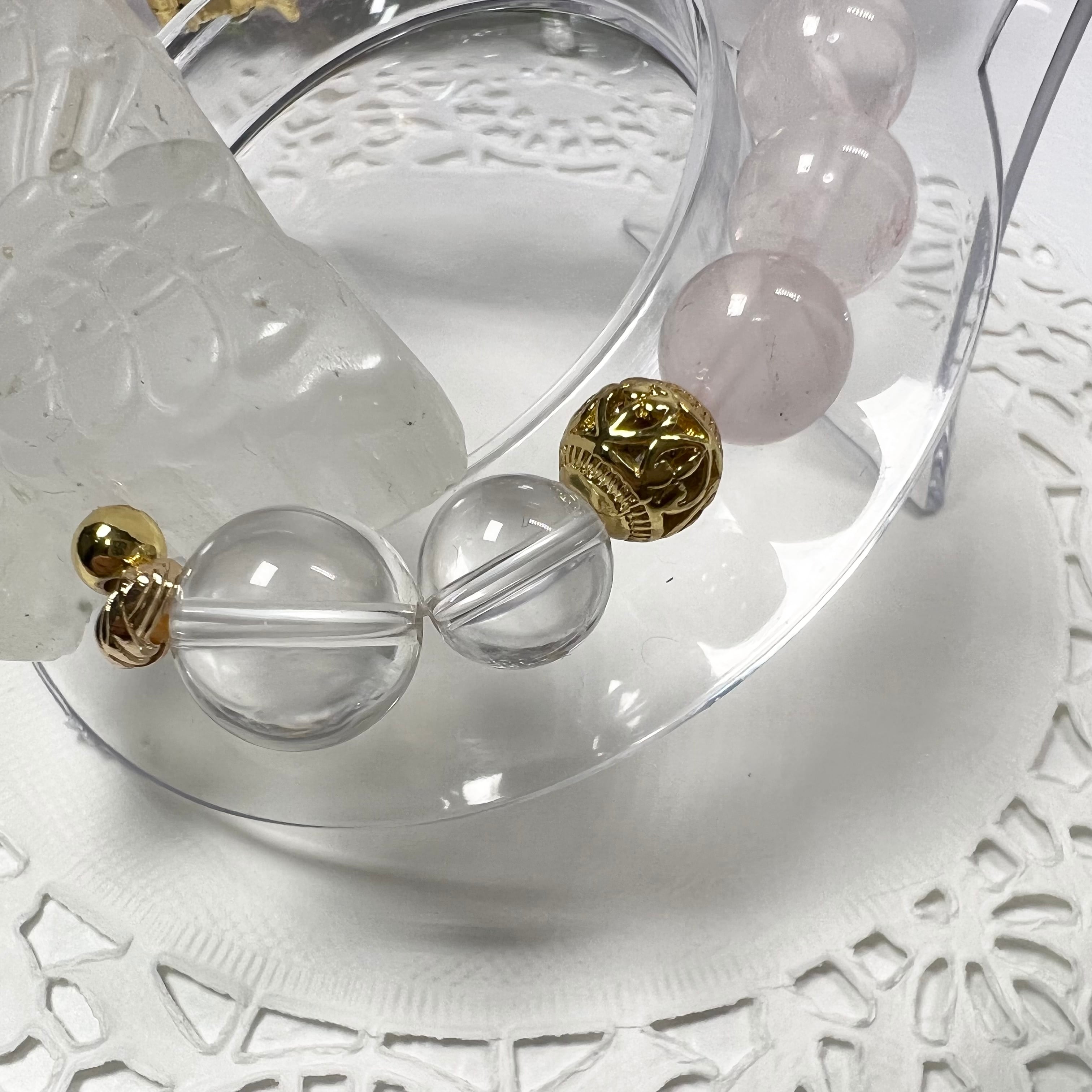 シンプルにローズクォーツ、水晶のみの天然石で組み合わせました。