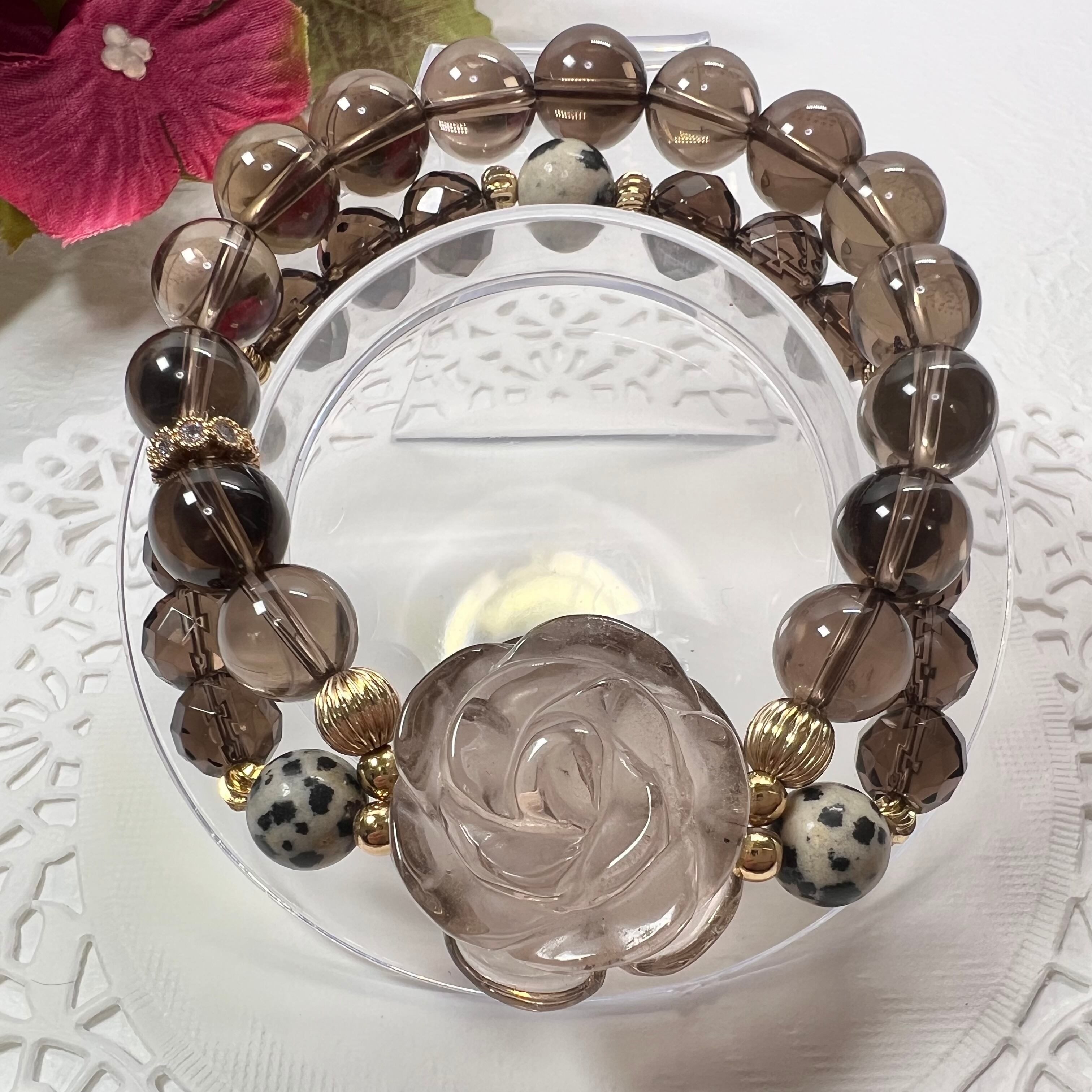 【スモーキークォーツ薔薇2連ブレスレット❁¨̮】天然石 パワーストーン