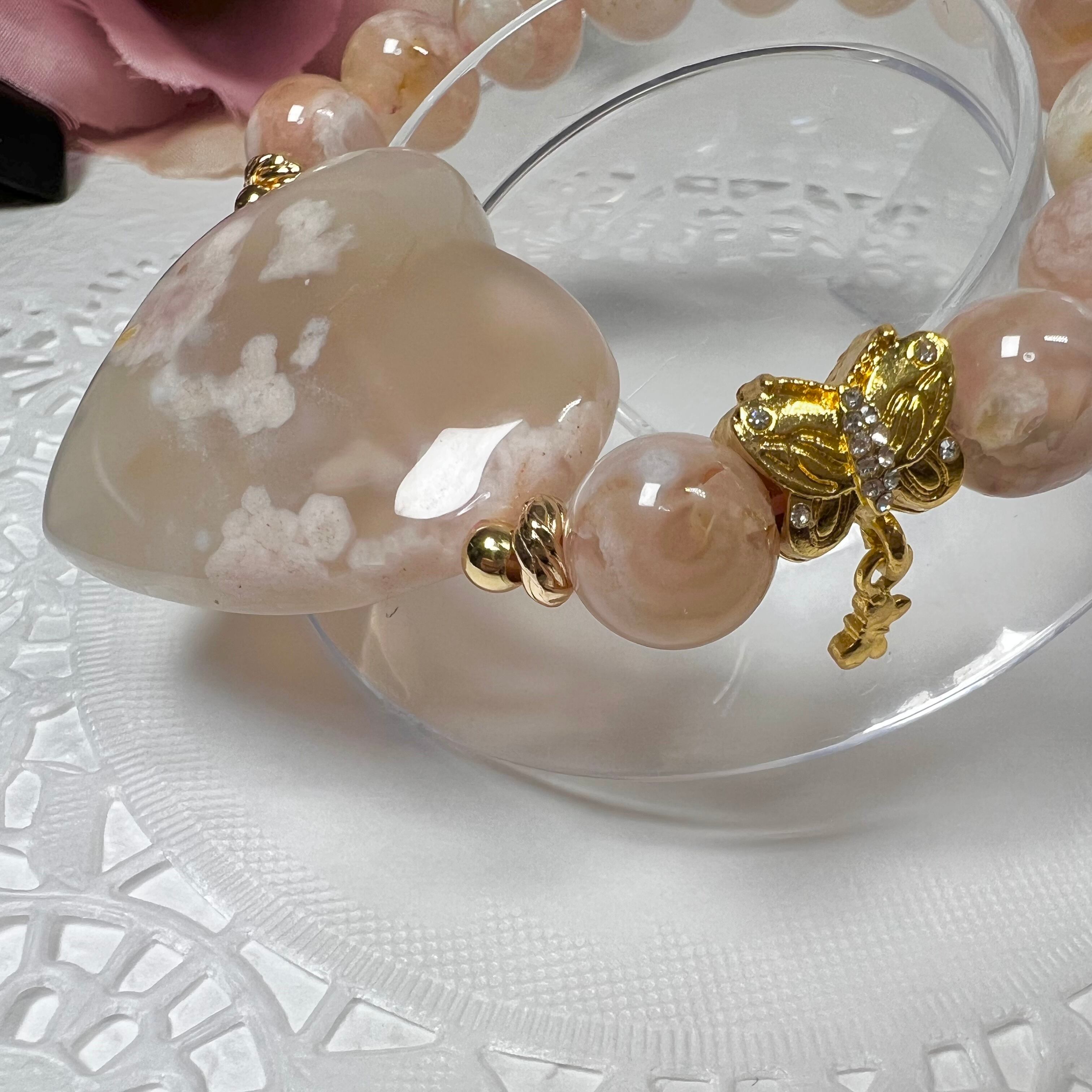 【桜瑪瑙ハートブレスレット♡②】♥送料無料♥天然石 パワーストーンブレスレット