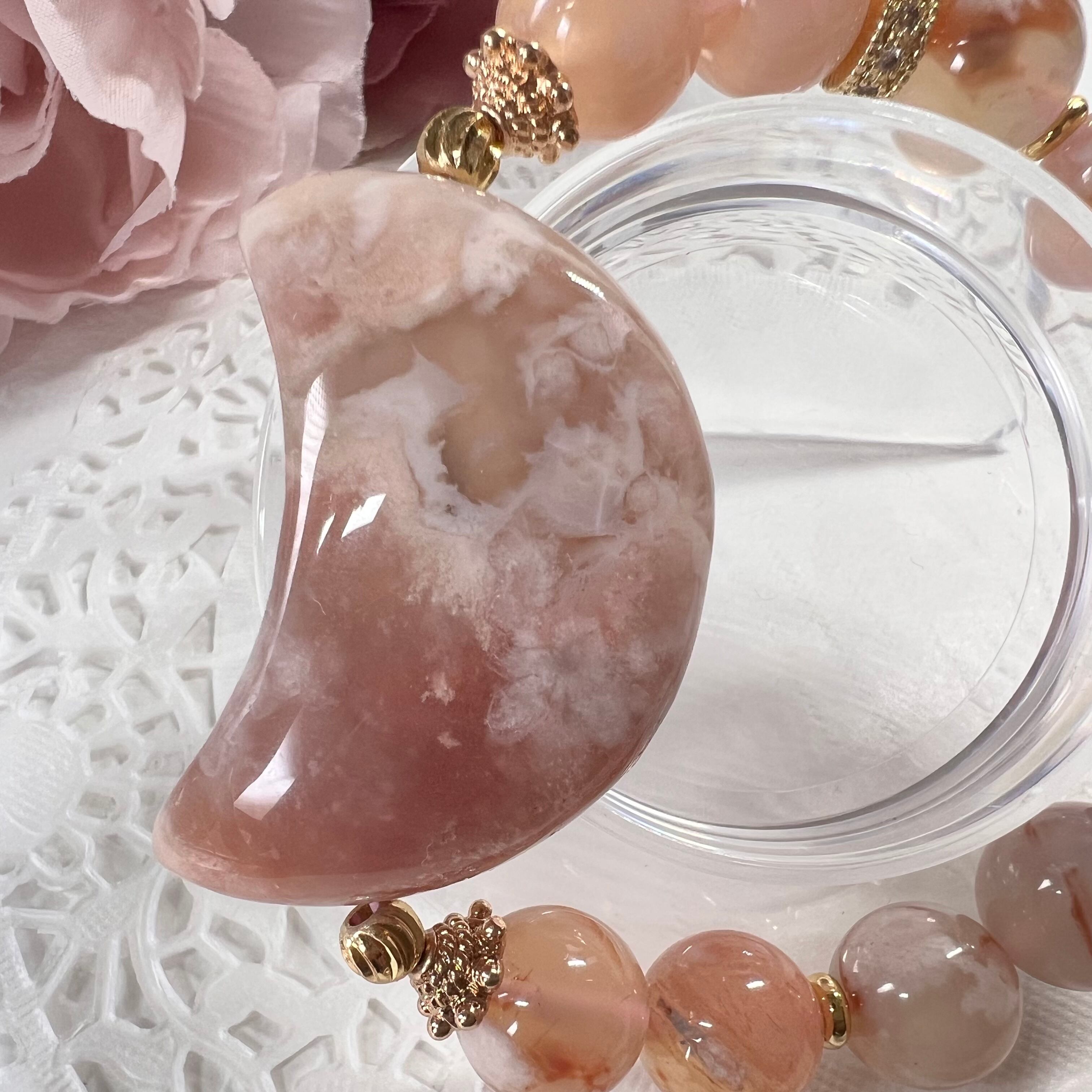 【桜瑪瑙 月ブレスレット☾·̩͙⋆】❤︎送料無料❤︎天然石 パワーストーン
