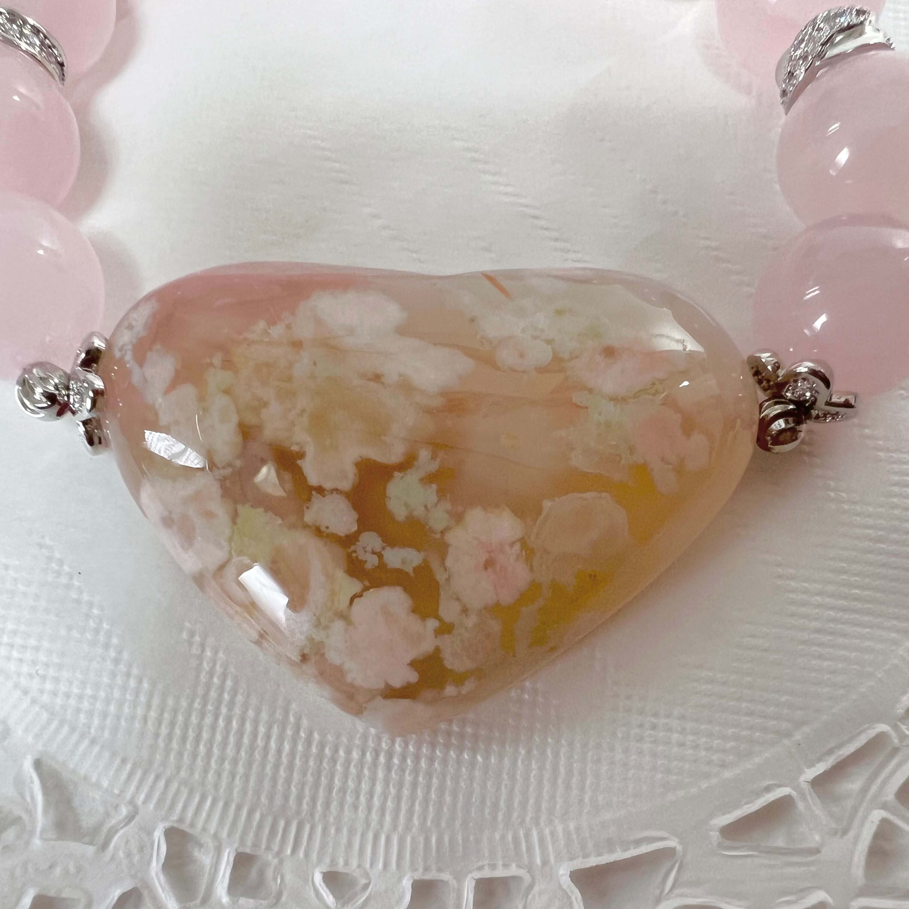 【桜瑪瑙❤︎ハートブレスレット】❤︎送料無料❤︎天然石 パワーストーン