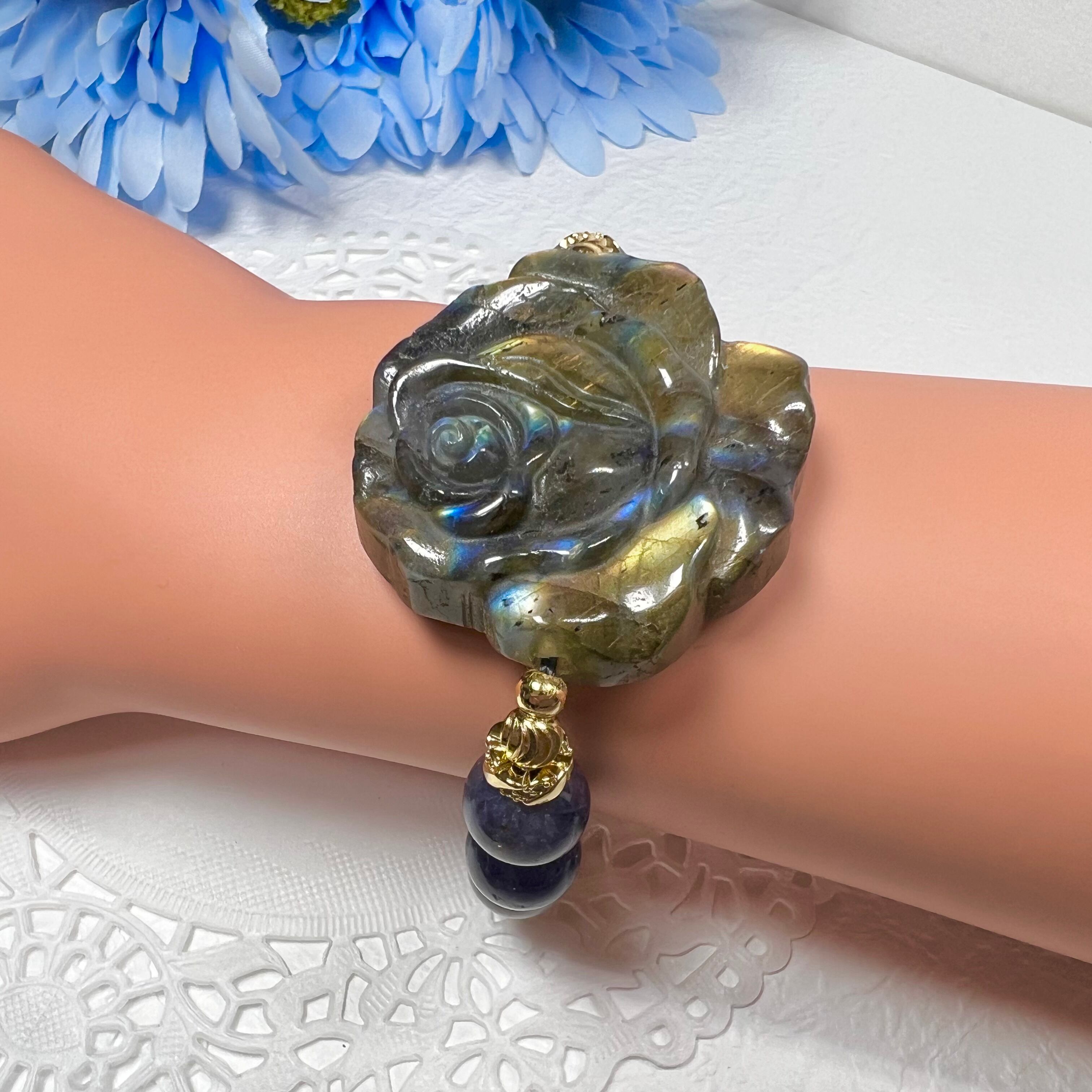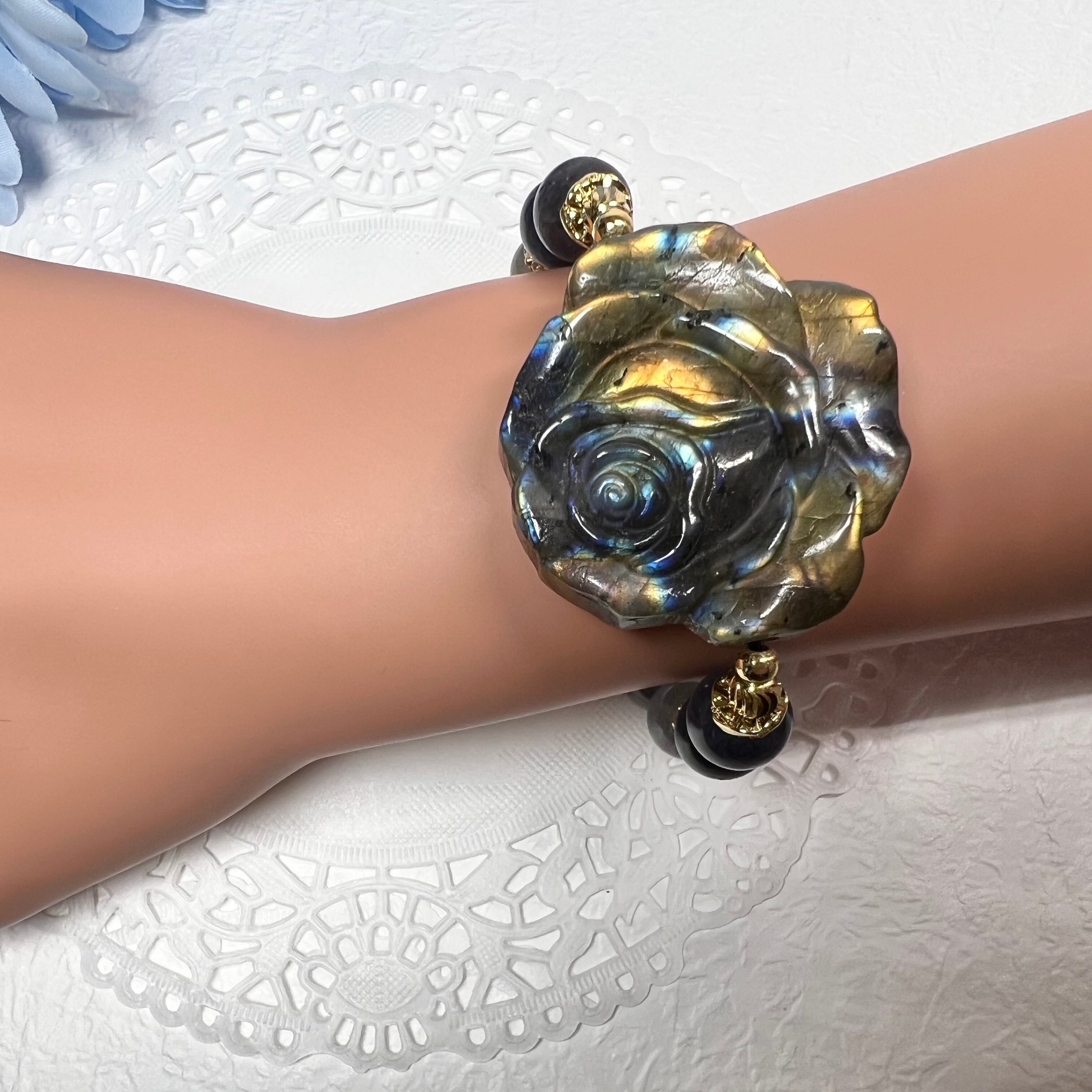 【高品質ラブラドライト薔薇ブレスレット✿】❤︎送料無料❤︎天然石 パワーストーン