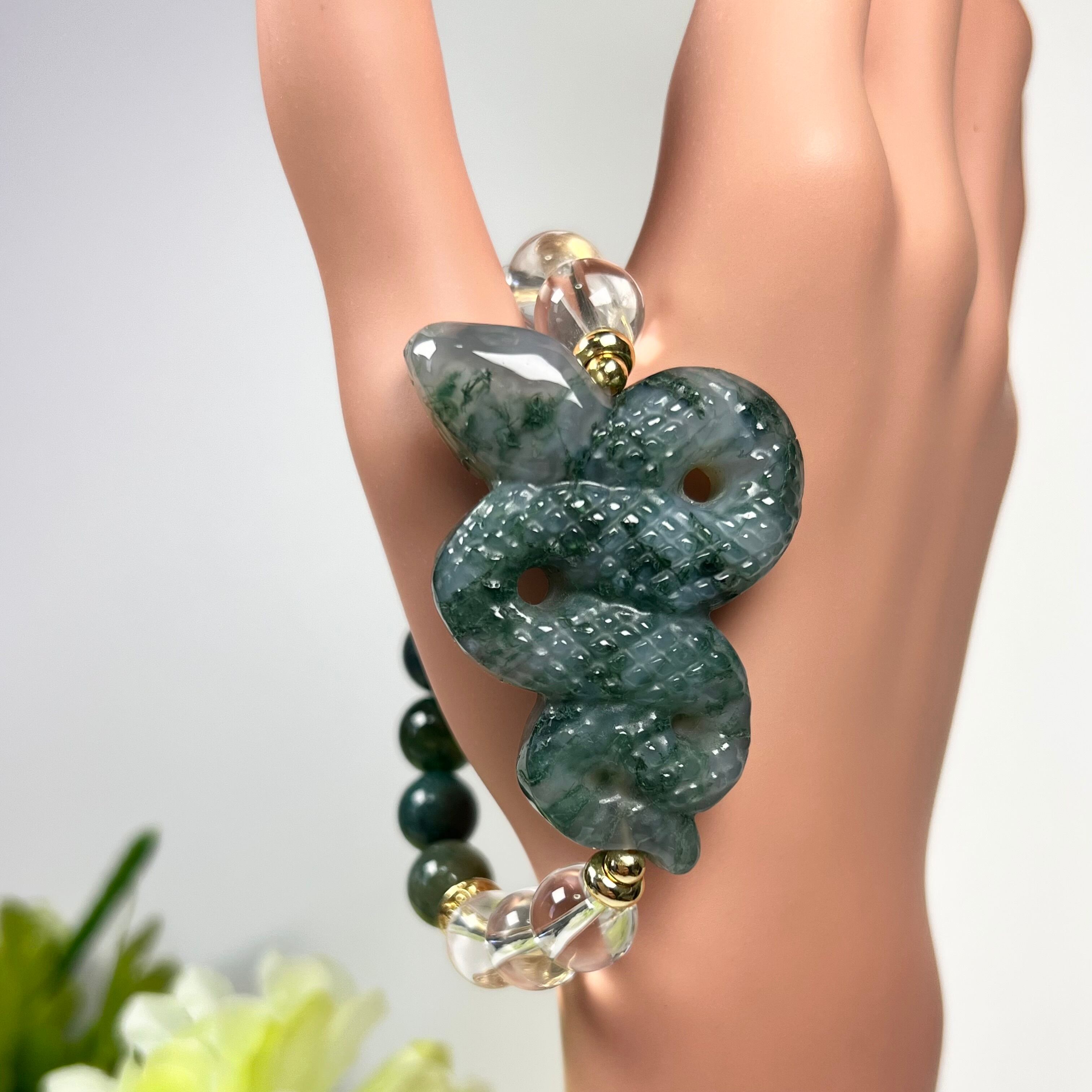 【モスアゲート 蛇 ブレスレット】ユニセックス プレゼント 父の日