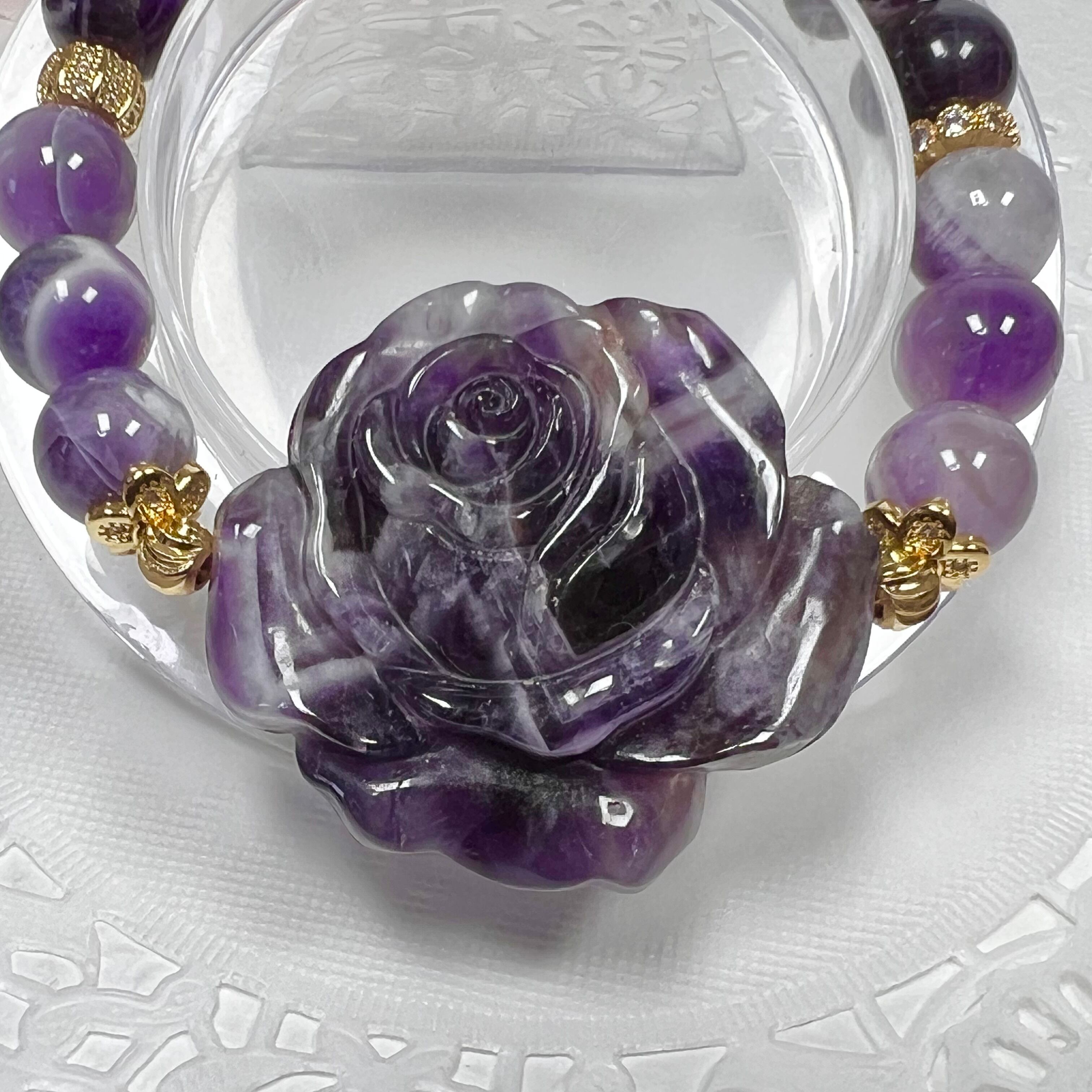 ケープアメジストのバラはアメジストとミルキークォーツが混ざり合った個性的な模様がなんとも可愛い❤︎
