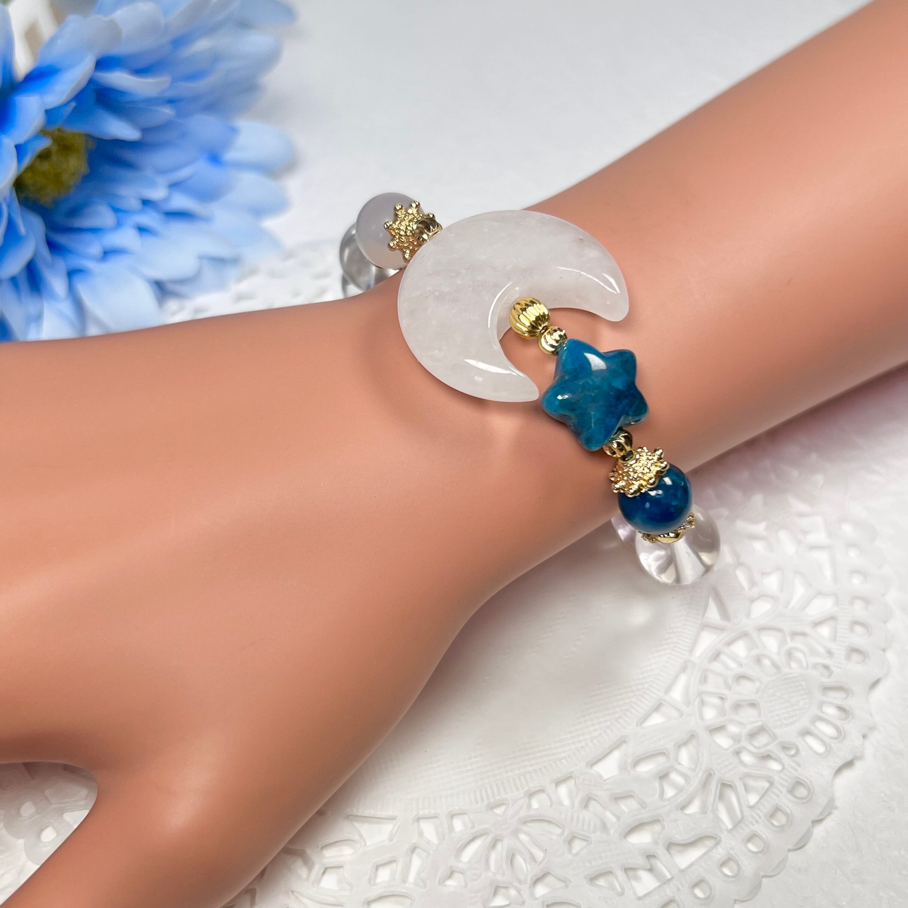 【水晶 月 アパタイト 星 ブレスレット】天然石 パワーストーン