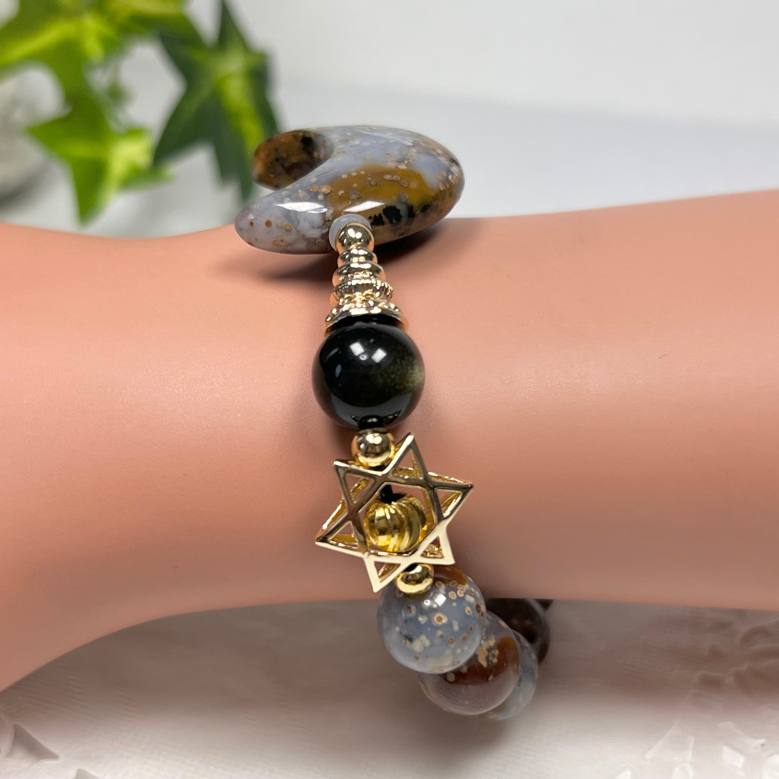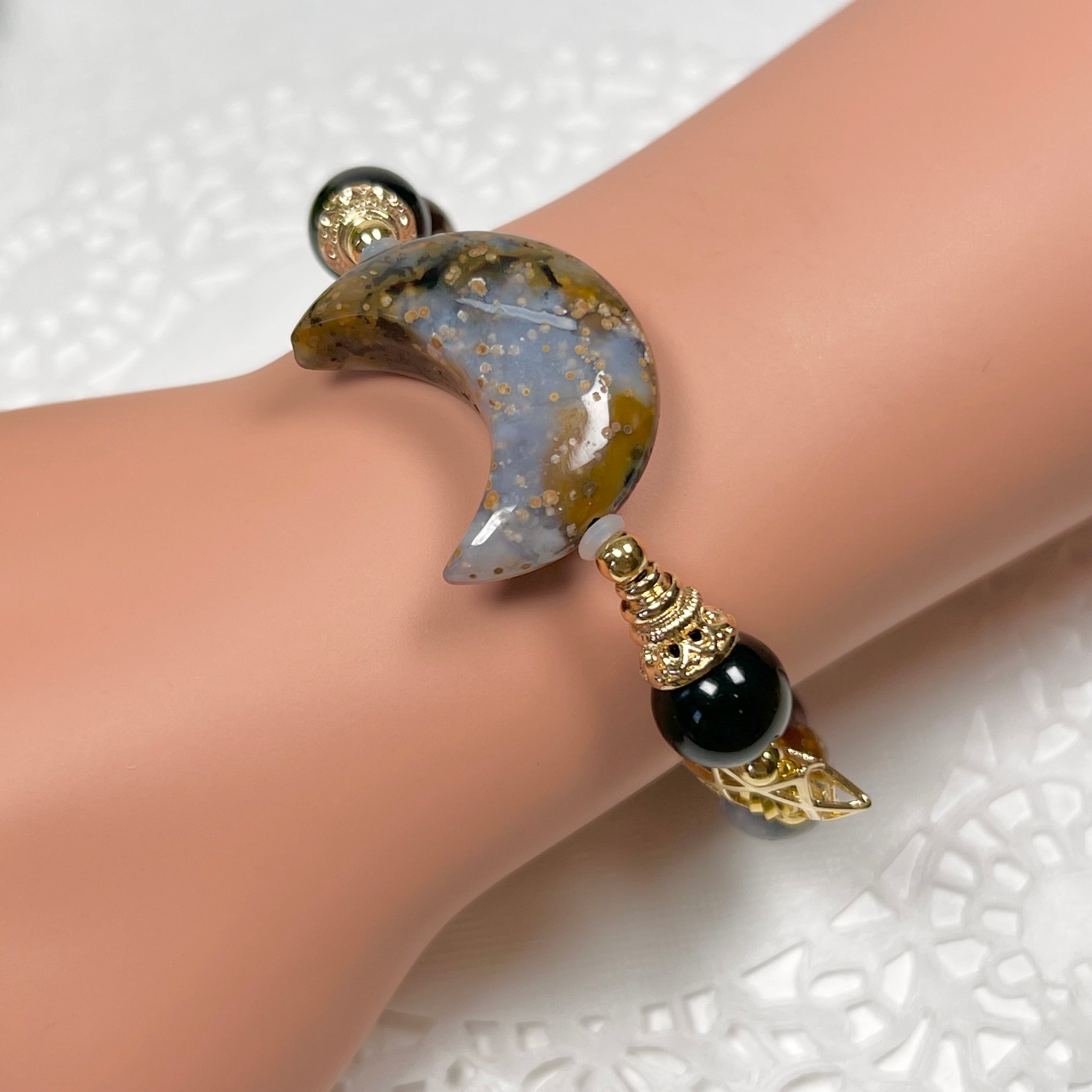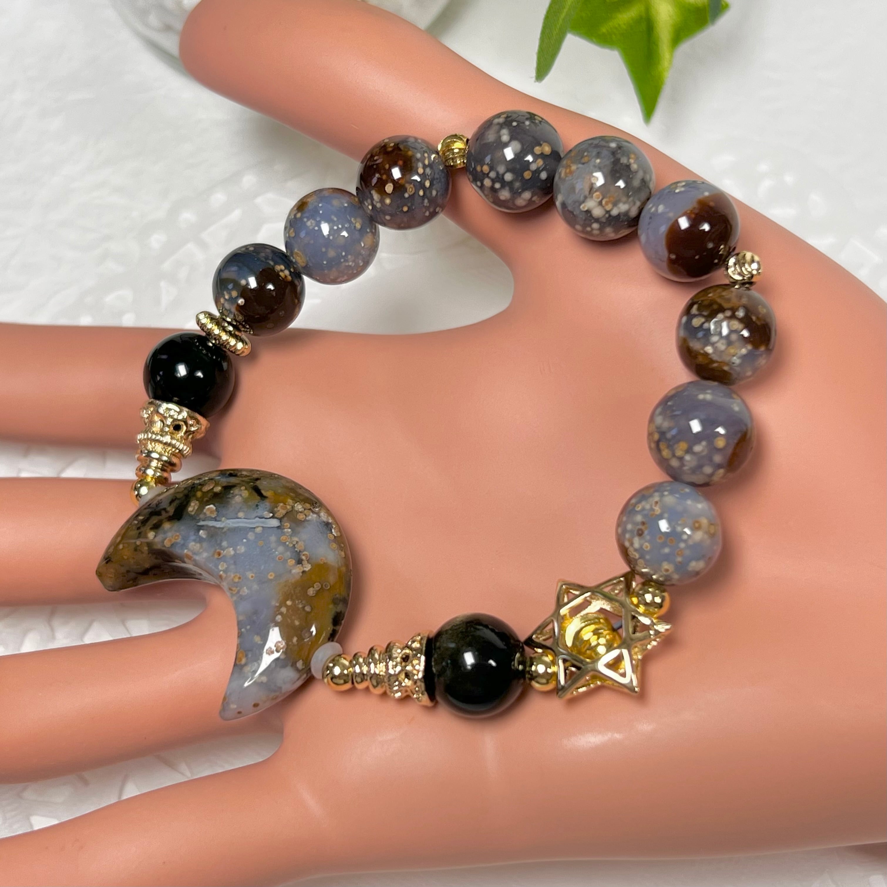 【青 希少 星空瑪瑙 月 ブレスレット】❤︎送料無料❤︎天然石 パワーストーン