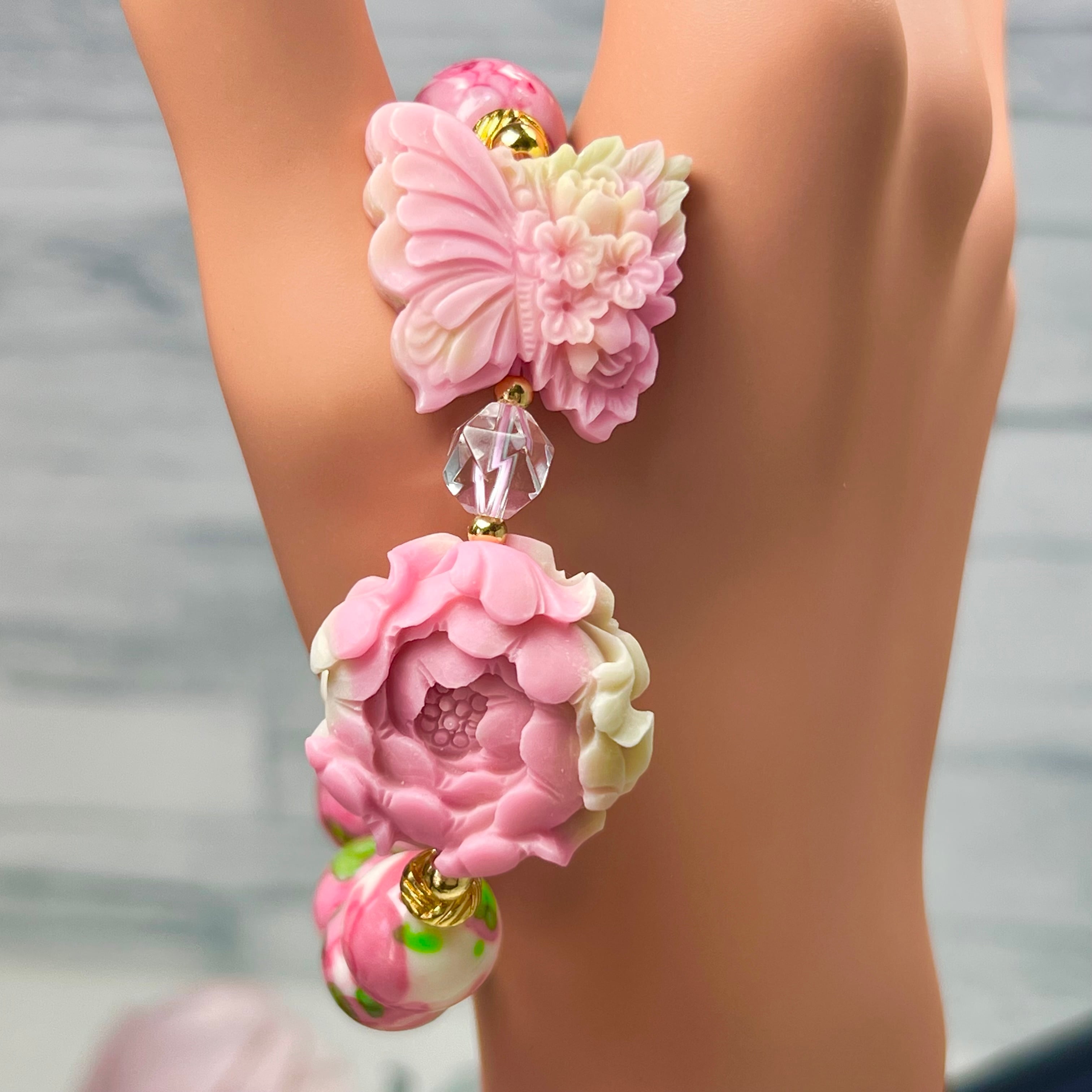 【塩源瑪瑙 バラ 蝶々 ブレスレット】❤︎送料無料❤︎天然石 パワーストーン