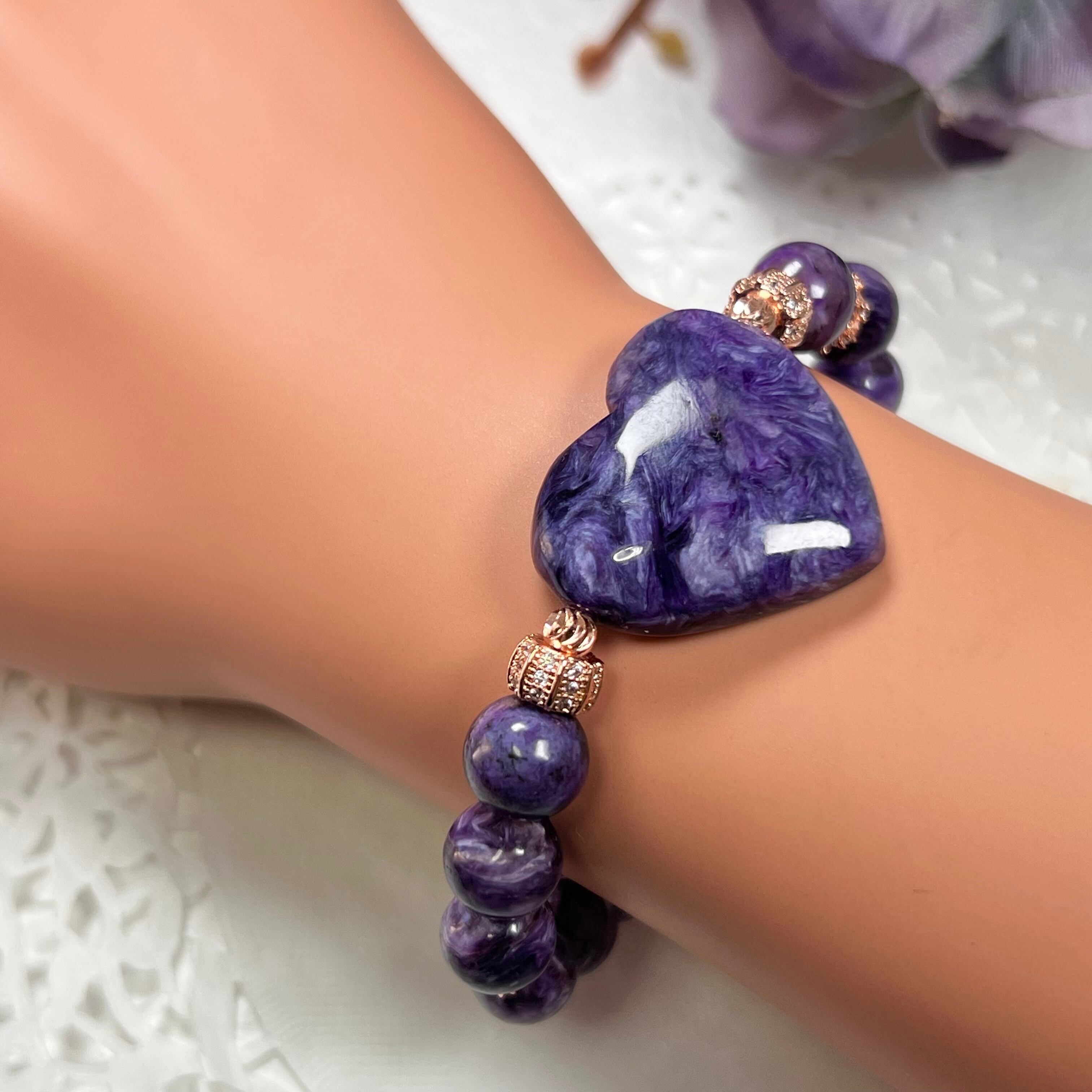 【チャロアイト ハート ブレスレット】天然石 パワーストーン