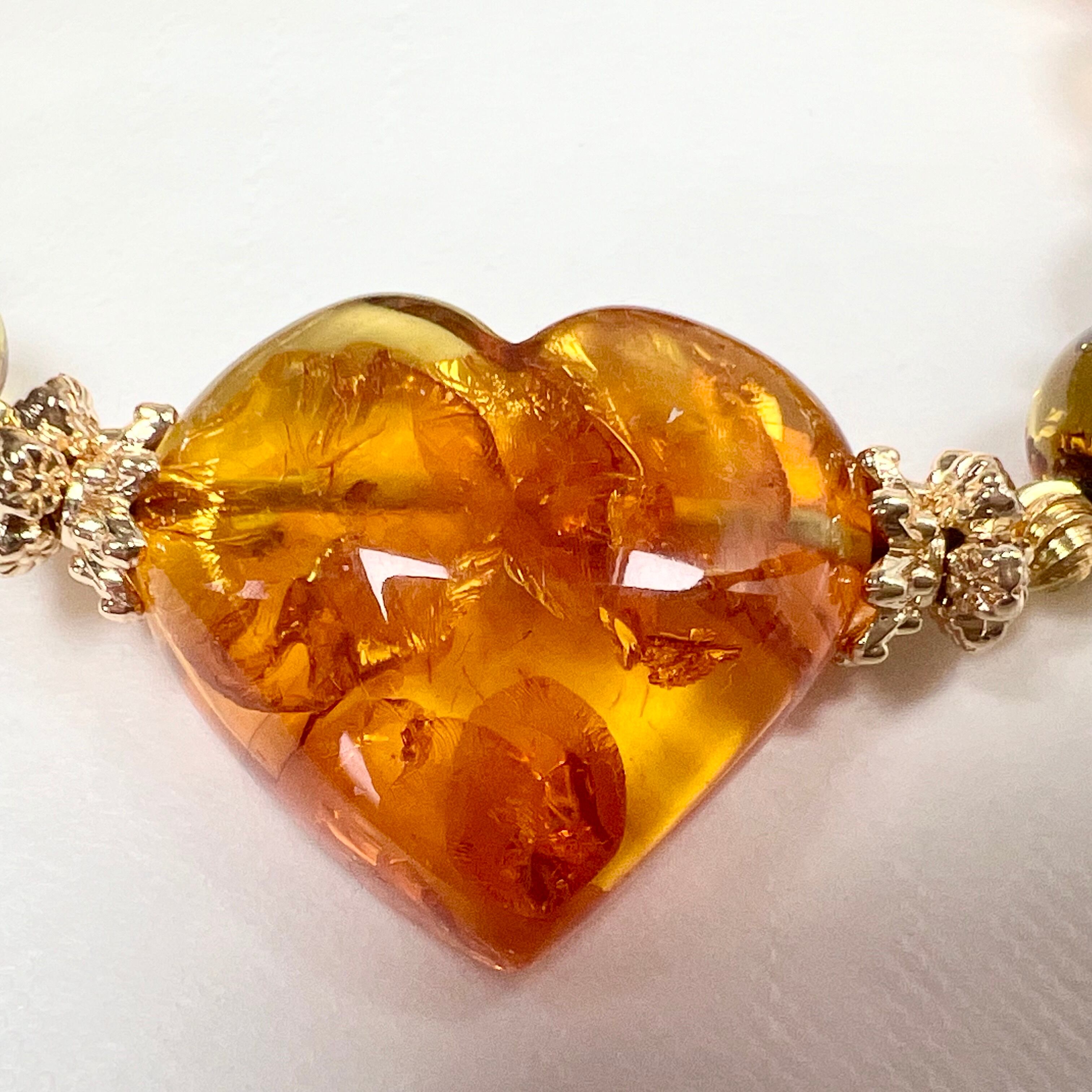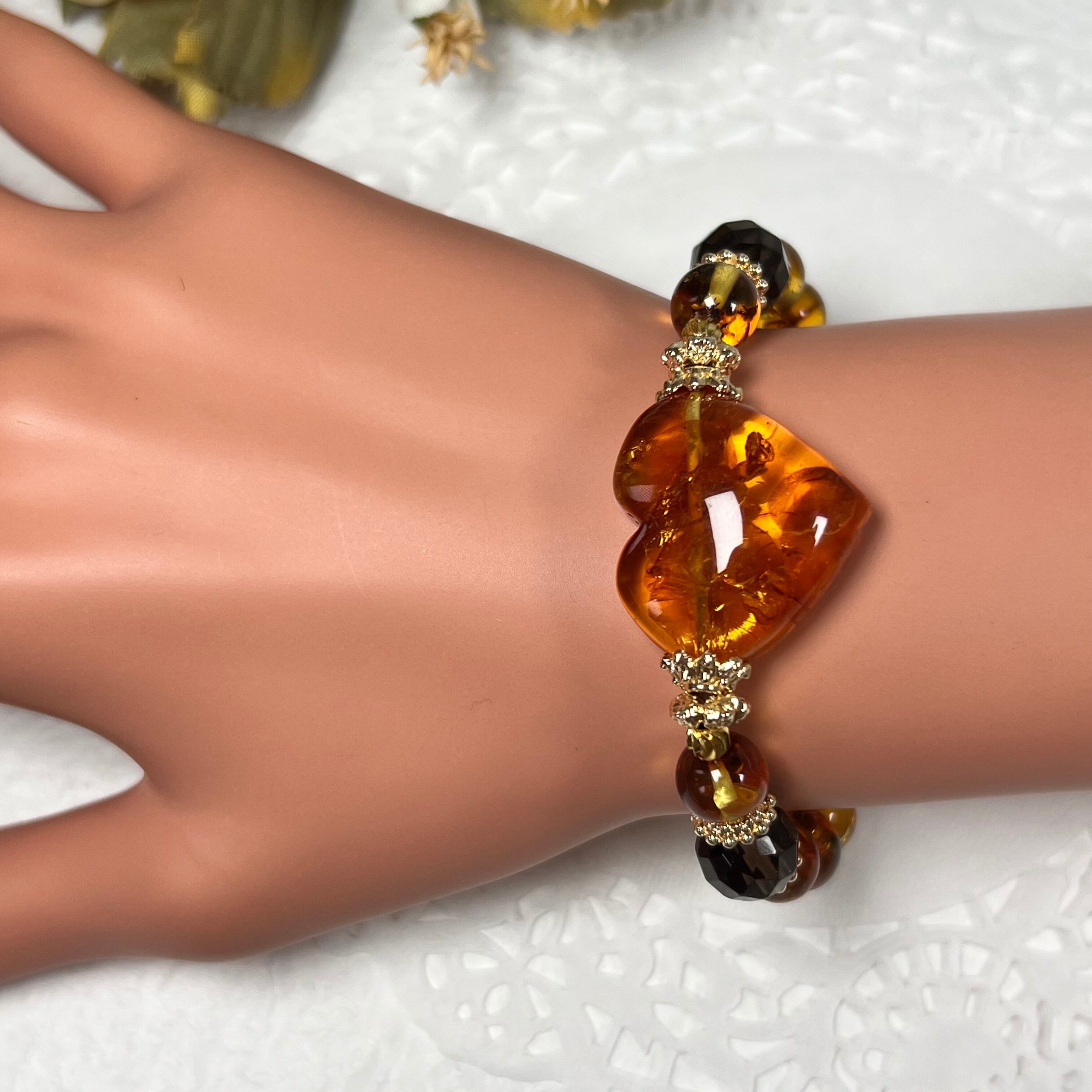 【フラワー アンバー 琥珀 ハート ブレスレット②】︎︎︎︎❤︎送料無料❤︎